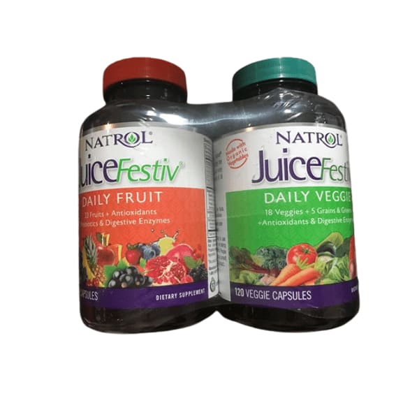 Natrol JuiceFestiv is a simple way to get your daily Fruits & Veggies. If you are not eating enough fruits and vegetables you need to try Natrol JuiceFestiv. It contains 23 Fruits, 18 Vegetables and 5 Grains & Greens. JuiceFestiv Provides antioxidant Vitamins A (Beta Carotene), B6, B12, C, E, as well as Folic Acid, probiotics and digestive enzymes for digestive health.