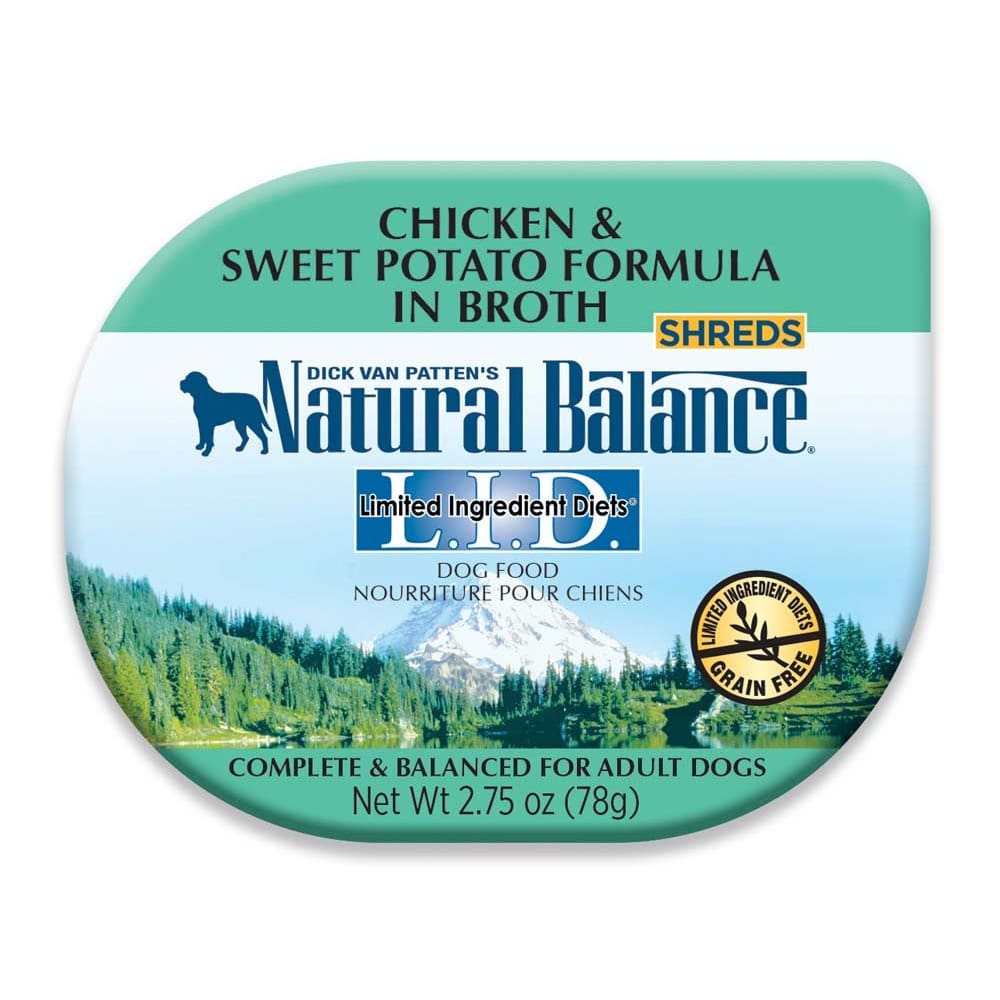 Natural Balance L.I.D. Limited Ingredient Diets expose your pet to only a limited number of healthy ingredients with Chicken & Sweet Potato Formula Shreds Grain-Free Wet Dog Food. Delicious shreds of premium chicken and sweet potato are cooked to perfection in a savory broth for a recipe that delivers all the essential nutrients your dog needs. With animal protein from just a single source, limited wholesome carbohydrates and no grains, this L.I.D. formula makes a great alternative food for sensitive pets