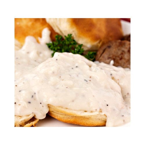 Old-Time Peppered Gravy with no added MSG is made with real milk. This mix creates creamy, white gravy with flecks of black pepper. Easy to make, just simply add water and cook for about 5 minutes before serving. Cases of this item contain colorful recipe labels to complete your repackaging for end users.