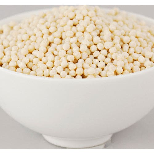 Named for its unique shape, Pearl couscous (also known as Israeli couscous) is shaped and rolled into tiny balls and then toasted. This allows the product to absorb liquids and cook up more like a rice or risotto. The toasting process also gives this product a nutty flavor and satisfying mouth feel. Pearl couscous is great for hot & cold salads.