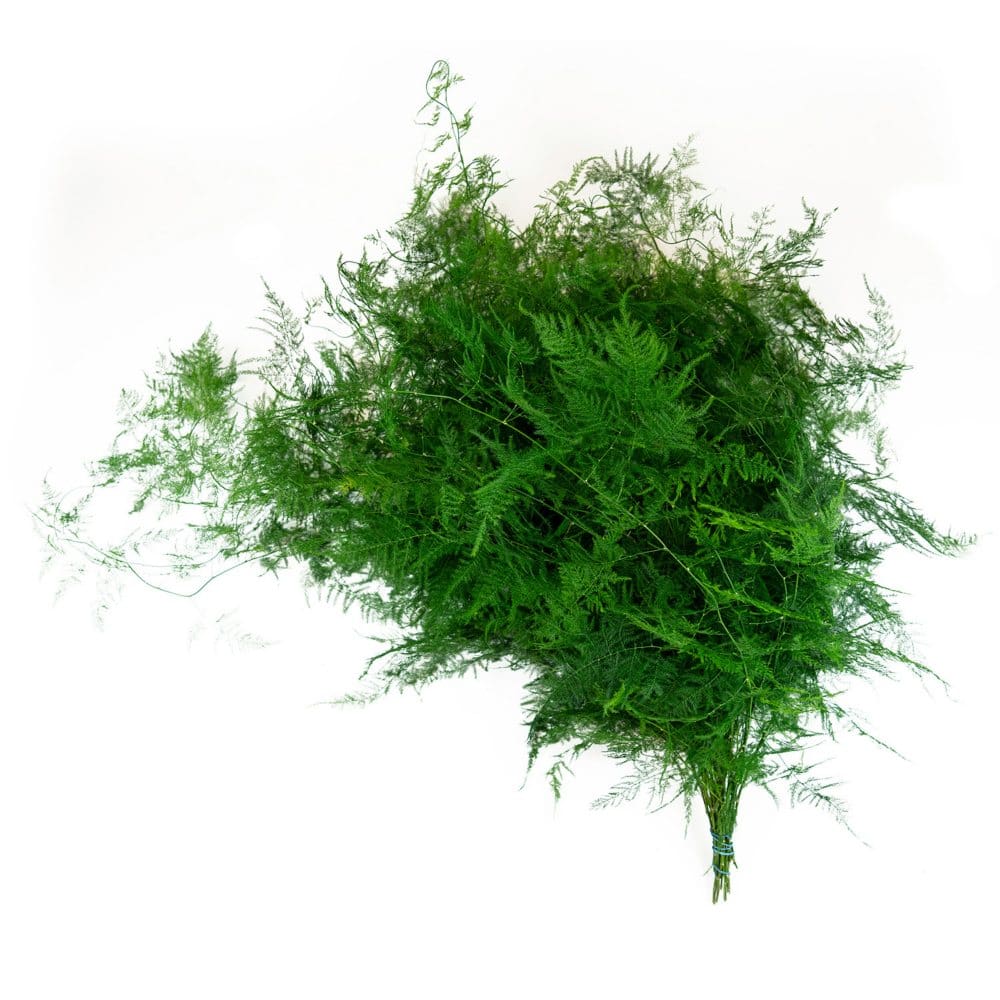 Plumosus is a natural climber, bringing lightweight texture to arrangements with its lacy branches and thin, wiry stem. It's popular with Victorian themes, wedding cakes, and garlands. Despite its dainty appearance, it's one tough green. Approximately 150 stems per box.