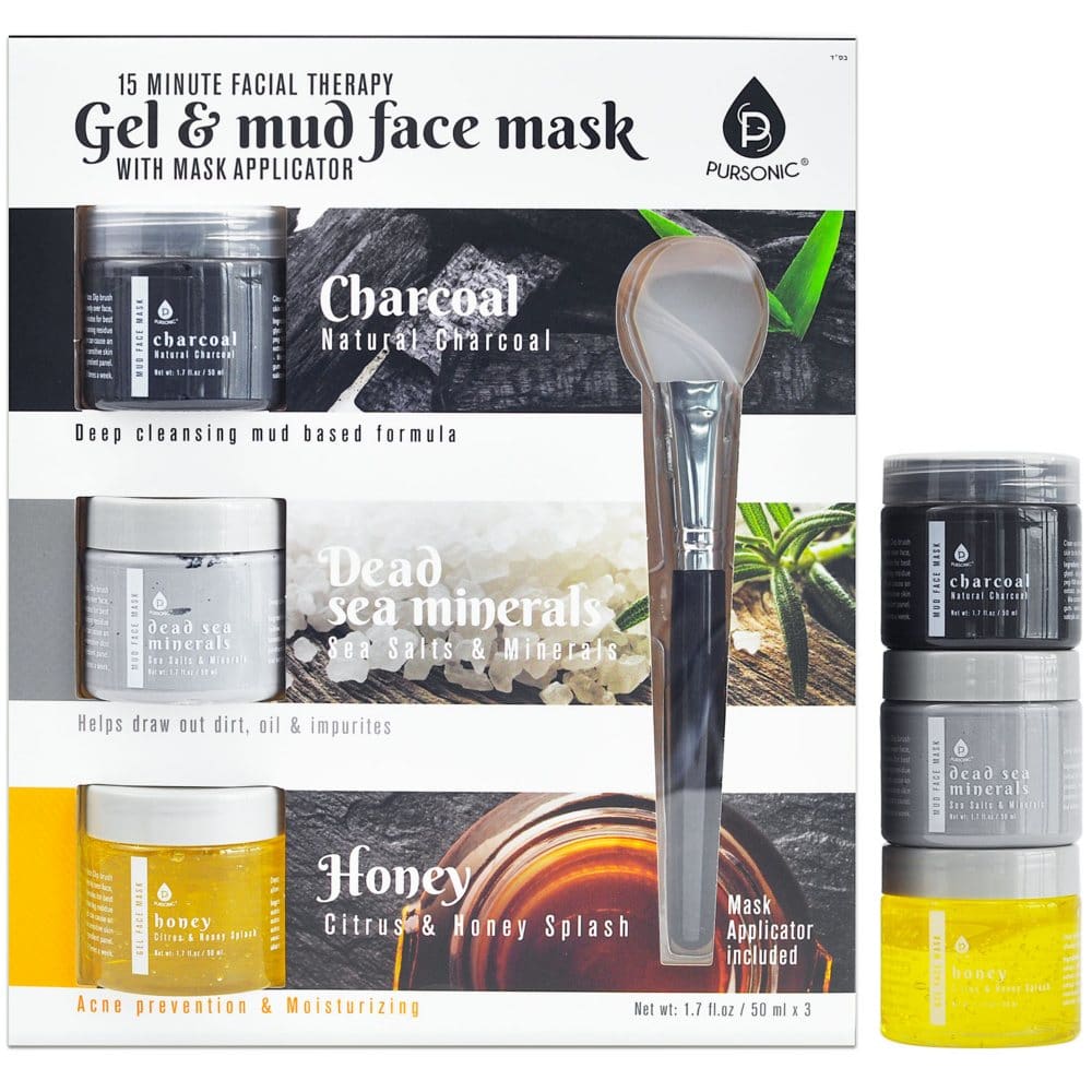 Pursonic Gel Mud Face Mask 3-pack, Charcoal + Honey + Dead Sea Minerals