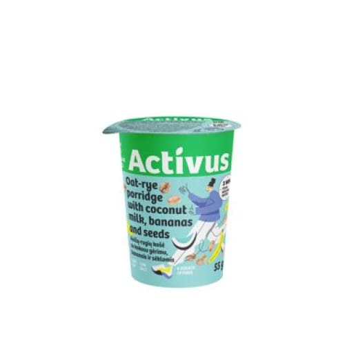 Activus oat rye porridge with coconut milk, bananas and seeds - quickly prepared in porridge containers without added sugar, no dairy products.