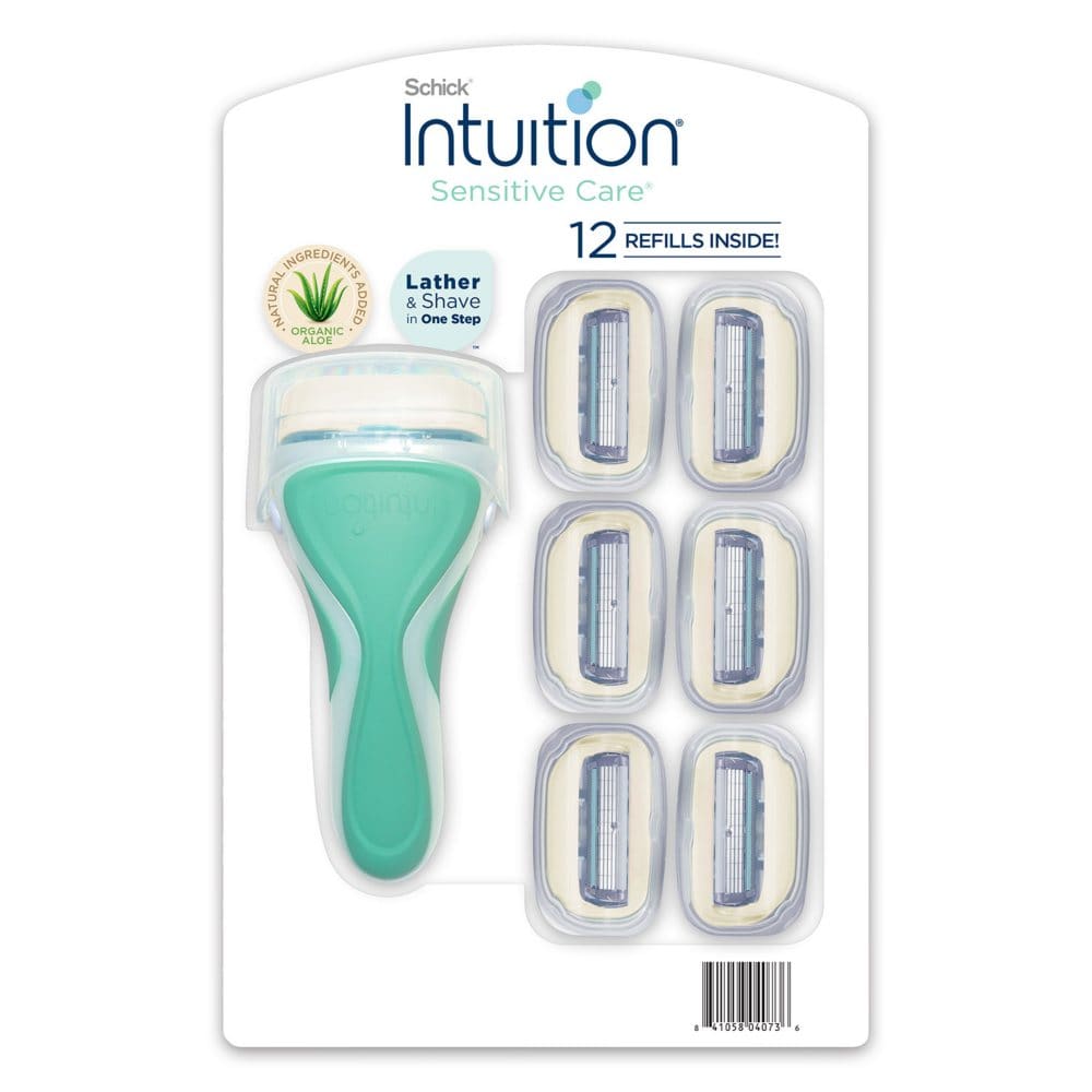 About Schick Intuition Sensitive Care Razor Handle + 12 Cartridges