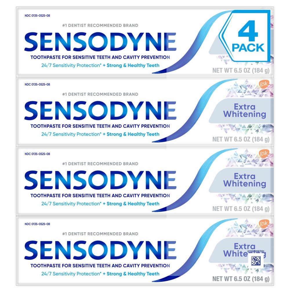 If you have sensitive teeth, Sensodyne® Extra Whitening Toothpaste (6.5 oz., 4 pk.) is an ideal option for you. It's designed to help relieve tooth sensitivity, and it has many other oral health benefits as well. The Sensodyne toothpaste works best when it's used for twice daily brushing, or as recommended by your dentist.