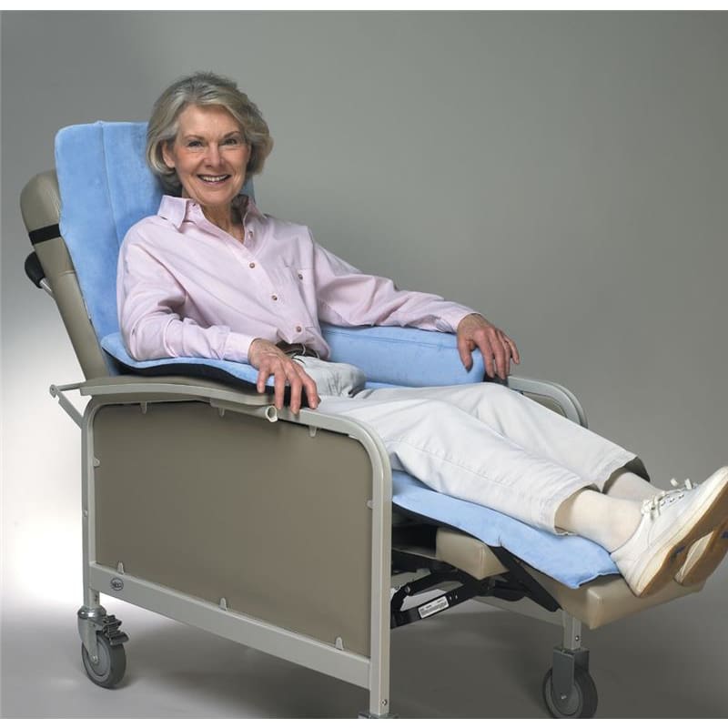 Geri-Chair Cozy Seat with backrest, seat and leg-rest. This comfortable, soft, cozy seat will make a significant contribution in preventing pressure sores. Ample foam padding improves geri-chair comfort. It covers metal chair components to reduce cuts and bruises and is designed not to slip or bunch-up. The reversible cover is made with a soft, launderable Cozy Cloth fabric. Size: 70"L x 21"W.