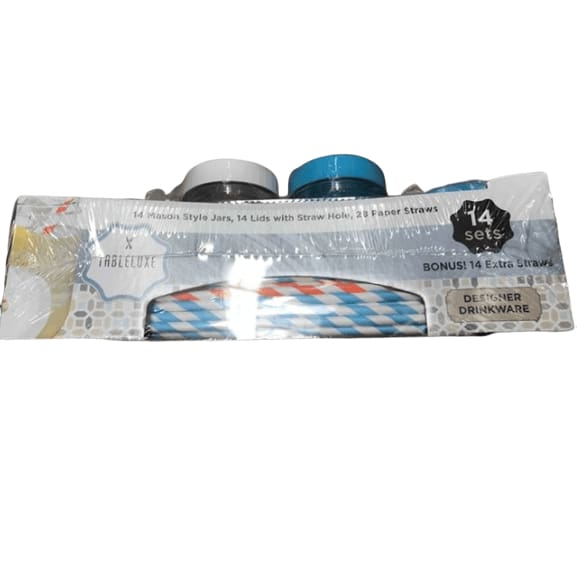 Tableluxe Mason Style Jars With Lids and Straws, 14 ct.