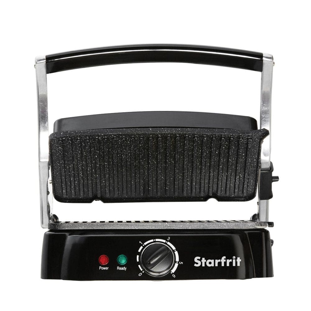 Create endless variations of mouth-watering and ideally grilled panini sandwiches with THE ROCK by Starfrit Panini Grill. This panini grill is designed for versatile cooking; open the grill 180° to use it as a flat grill to cook your favorite meats and vegetables just how you want. The integrated spout facilitates the draining of excess grease. The extra thick removable plates are treated with the patented Rock.Tec surface treatment, offering optimal heat distribution for fast and even cooking. The non-stick properties of the plates are 3x better than traditional plates, so any remaining residue can be easily wiped away with a cloth or pop them in the dishwasher for hassle-free washing. The self-adjusting hinges allow for different thicknesses and the product includes adjustable temperature control. This is your practical solution for your busy and healthy lifestyle.