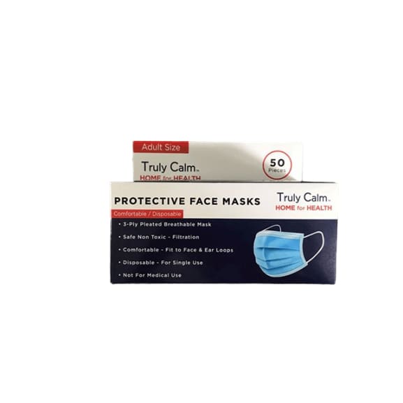 Truly Calm Protective Face Masks, Adult Size, 50 Count