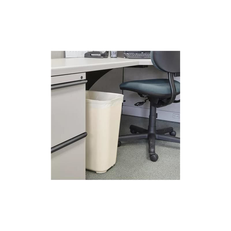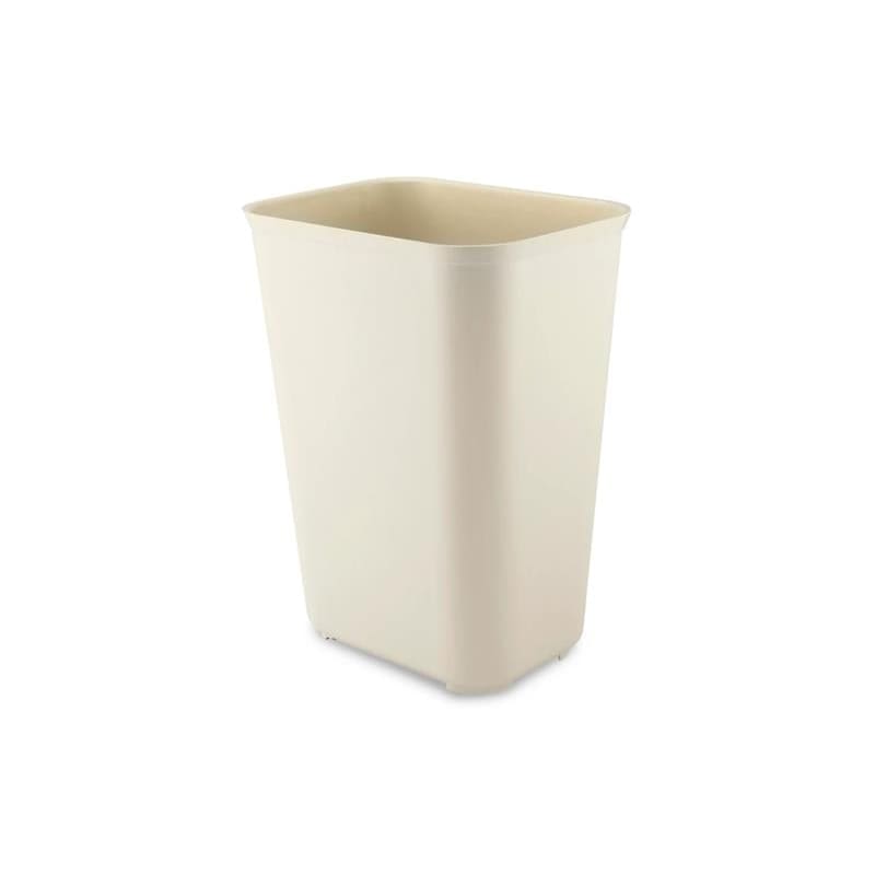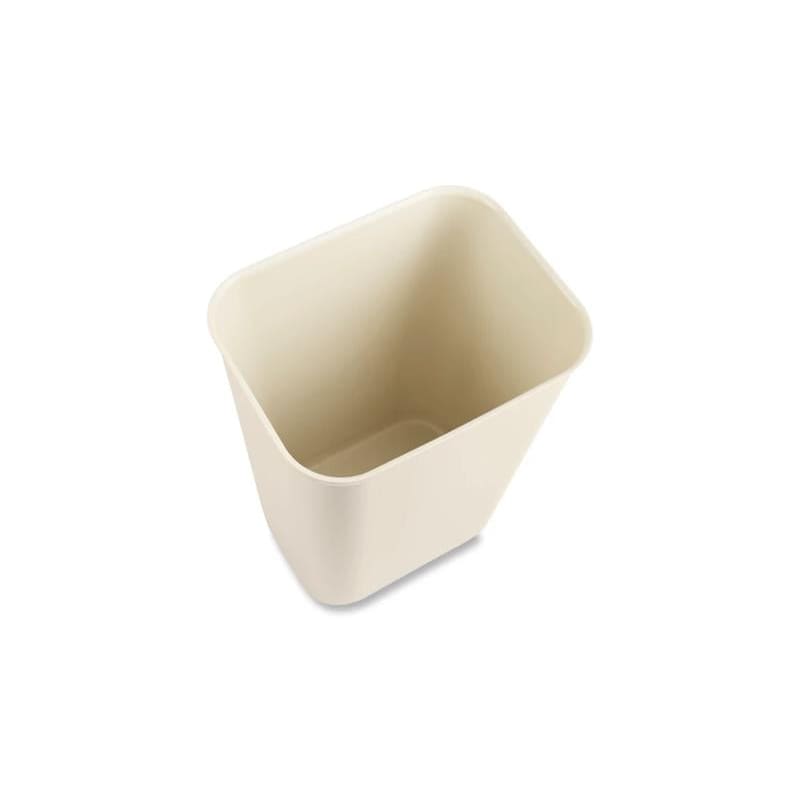 Rubbermaid 10 Gallon Fire-Resistant Trash Can. UL Classified and CSFM approved for fire safety, these cans prevent accidental fires from spreading. The fiberglass construction resists chips and dents. Dimensions: 15" L x 11" W x 20" H, Weight: 7 lbs., Color: Beige.
