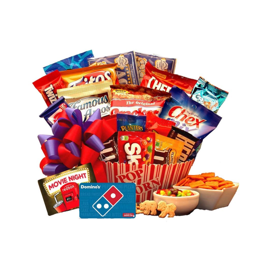 Ultimate Movie Lovers Movie Night Gift Basket with Redbox and Dominos Gift Cards