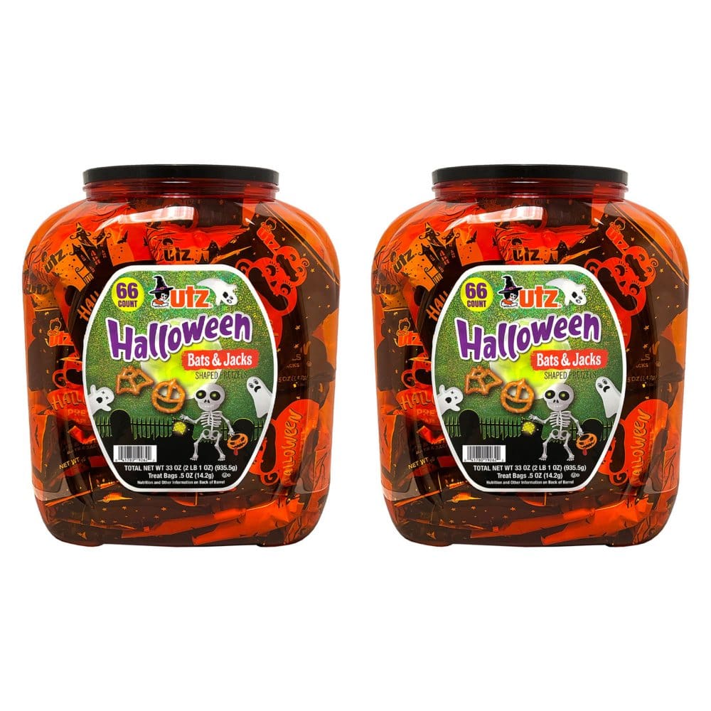 Utz delivers the spirit of Halloween with our fun, seasonal pretzel shapes! This Halloween themed barrel delivers 66 treat bags filled with Bat and Jack-o-lantern shaped pretzels! Perfect for individual snacking or trick or treating.