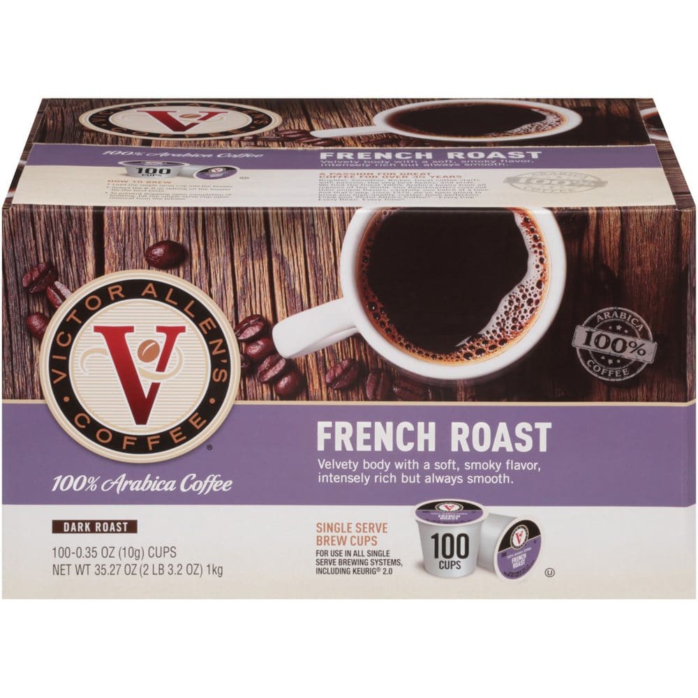 Victor Allen's® French Roast (100 single-serve cups) gives you the ultimate in fresh flavor. Each of these single-serve cups gives you all the flavor of a custom blend of French roast coffee beans. Whether you drink it as your first cup of the day or as an afternoon pick-me-up, Victor Allen's Coffee will deliver the dark roast coffee flavor that you are craving.