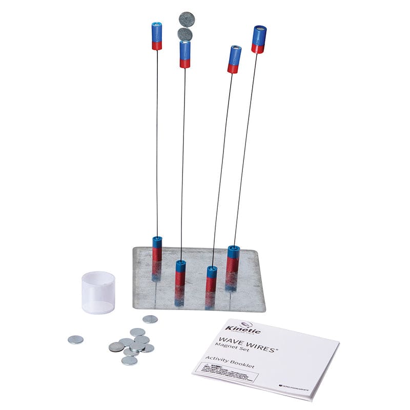 Wave Wires Magnet set is perfect for small groups or individuals to investigate magnets and their kinetic interactions. Just place the magnet wires on the base, activate them, and watch the unique ways they oscillate as their invisible magnetic forces "bounce" off one another! Great for classroom labs (grades 3 - 8), STEM programs, science fairs, maker spaces, and more. Conduct NGSS-aligned experiments that explore: Force and Motion, Structure and Properties of Matter, Energy, Engineering Design, Waves, Cause and Effect, Patterns, Stability and Change...and more!
