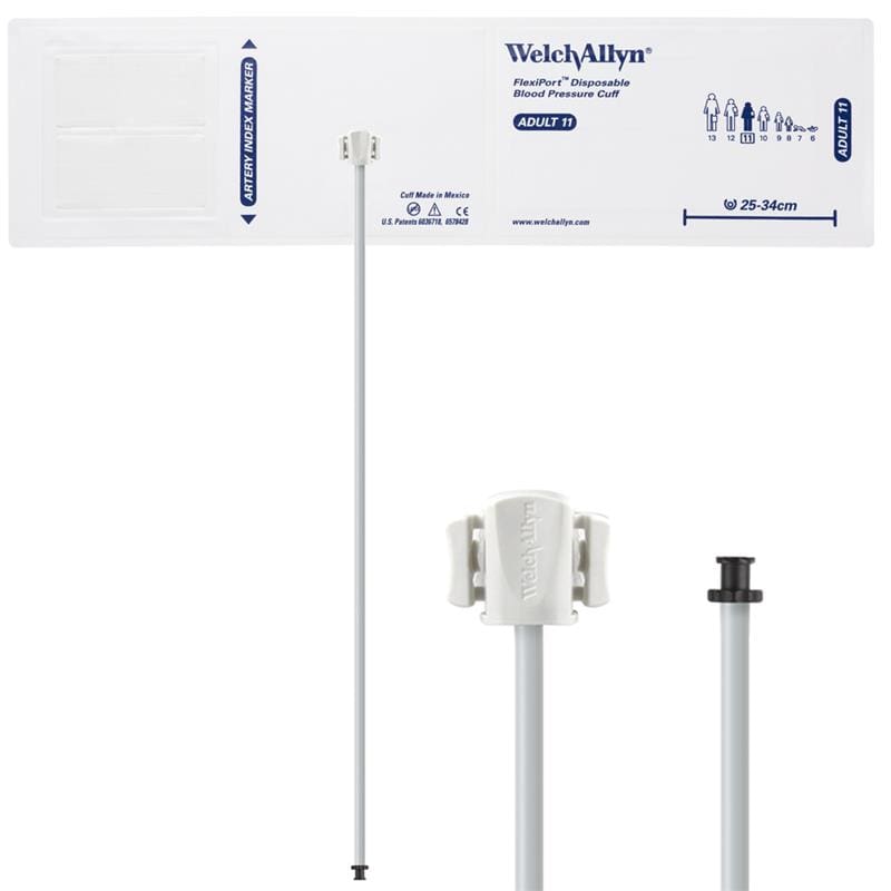 The FlexiPort Blood Pressure Cuff is soft and disposable. It has 1 tube with a Tri-Purpose (#5082-168) connector. Size 11 Adult. Qty: 20.