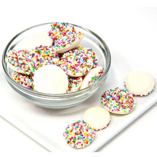 White Rainbow Nonpareils are made from white chocolate topped with rainbow-colored candy seeds - a smooth and creamy melt-in-your-mouth treat.